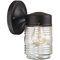 Lantern with clear jelly jar design glass shade. 4-1/2" diameter x 8-1/8" height x 5-3/4" base extension. Uses one medium base bulb, 60 watt maximum, (not included). cULus Listed.